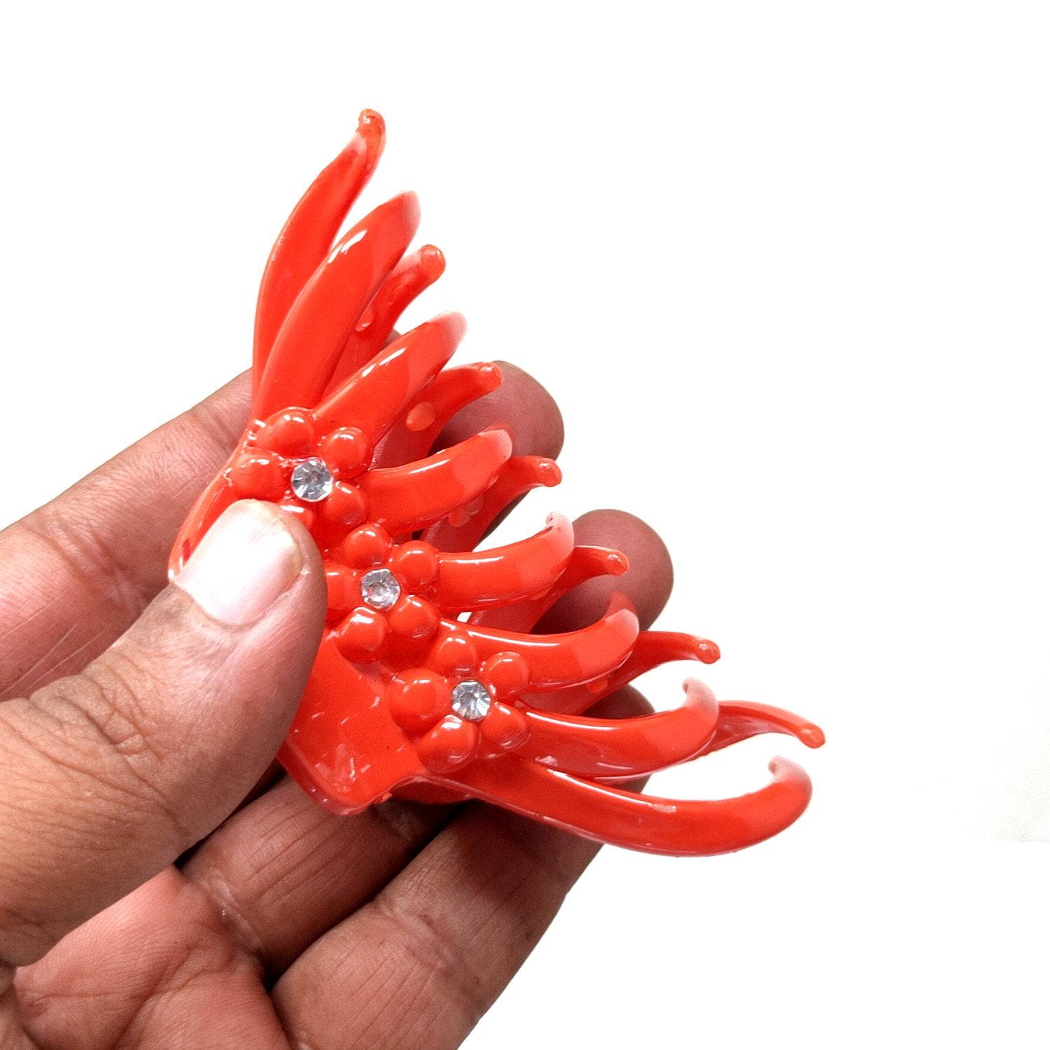 Rhinestone Studded Large Unbreakable Plastic Hair Clutcher for Girls and Women (Orange, ZA-26C)