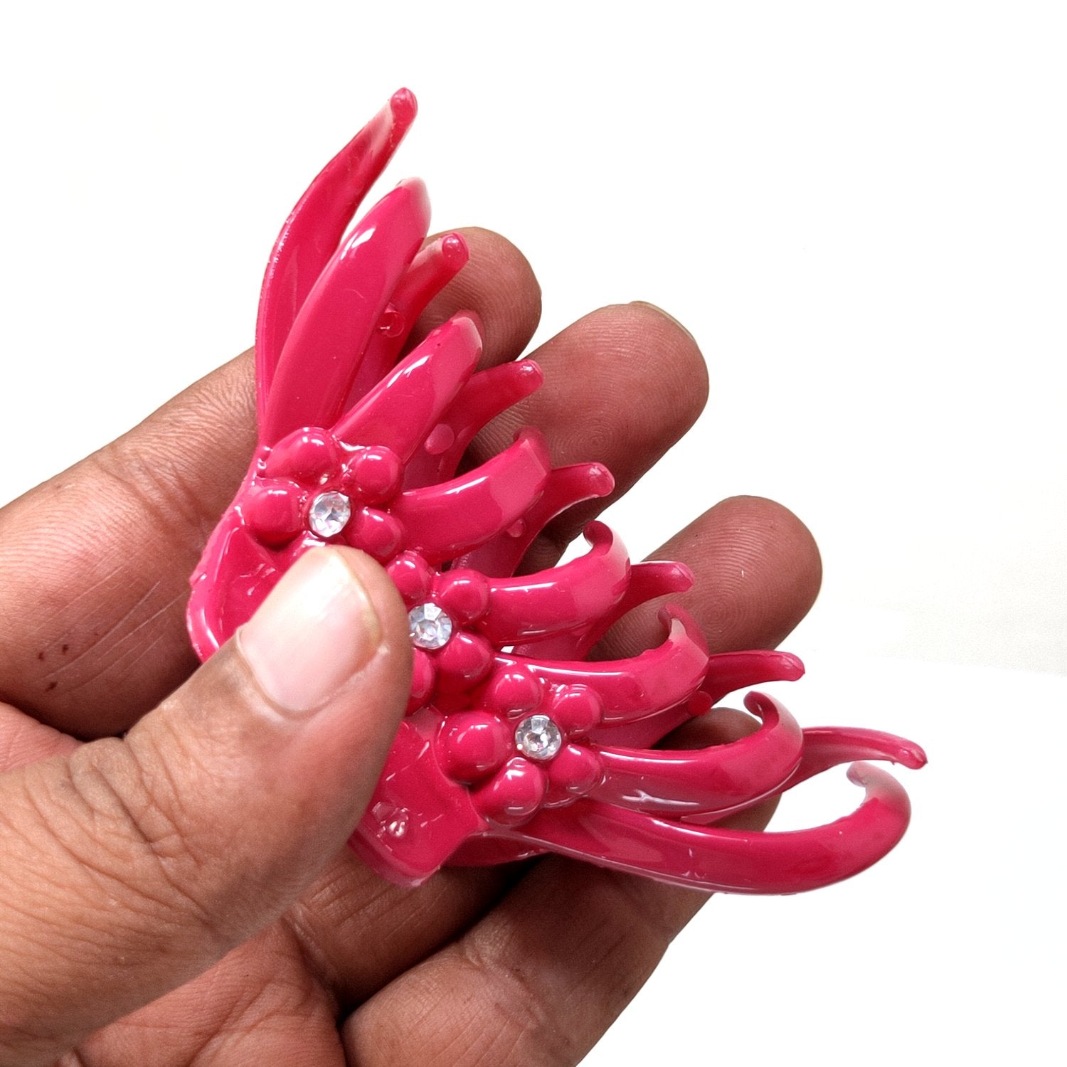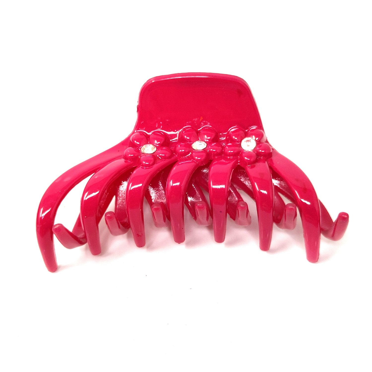 Rhinestone Studded Large Unbreakable Plastic Hair Clutcher for Girls and Women (Hot Pink, ZA-26D)