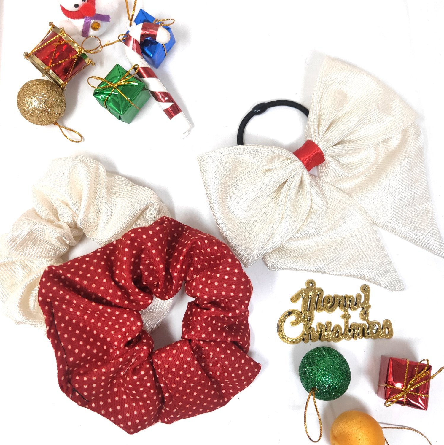 Scrunchies and Bow Hair Tie Christmas Combo (30-08, Pack of Three)